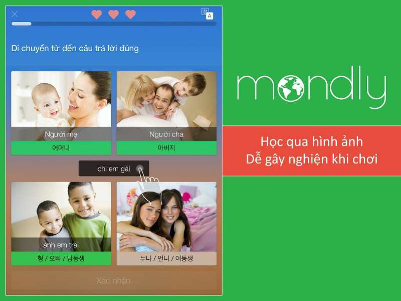 Mondly là một ứng dụng học tiếng Hàn nổi bật với phương pháp học tập thụ động, cho phép bạn tiếp thu ngôn ngữ một cách tự nhiên. Với hơn 2000 từ vựng, cụm từ và câu giao tiếp thông dụng, Mondly cung cấp cho người học một nền tảng vững chắc từ cơ bản đến nâng cao. Ứng dụng này còn tích hợp hình ảnh minh họa sinh động, giúp việc ghi nhớ từ vựng trở nên dễ dàng hơn bao giờ hết. Bên cạnh đó, các trò chơi tương tác thú vị không chỉ giúp bạn thư giãn mà còn củng cố kiến thức một cách hiệu quả.